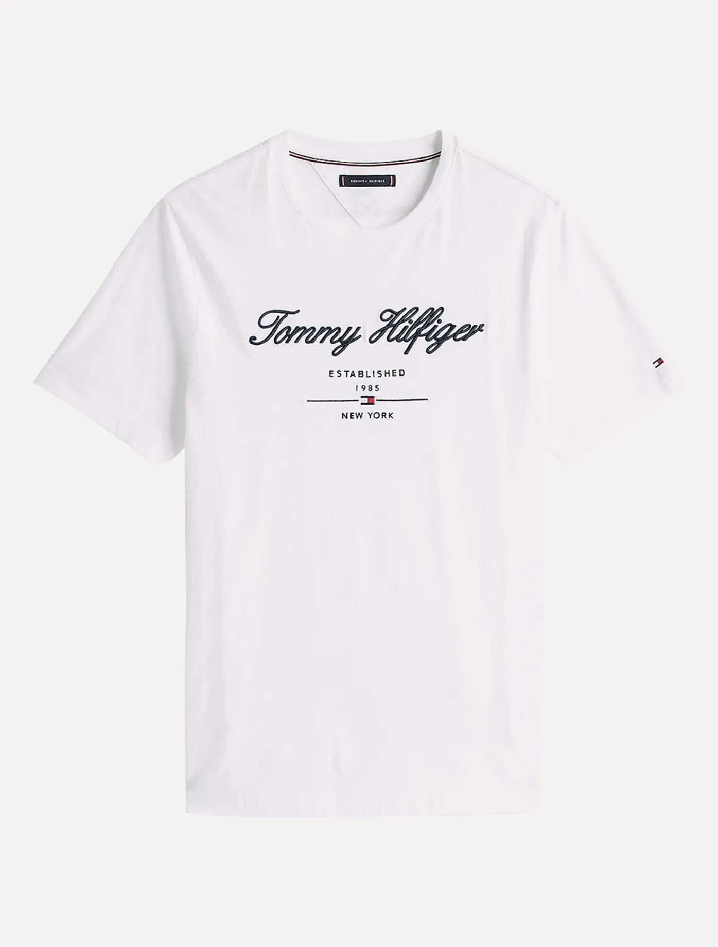 Detalles: Logo Tommy Hilfiger bordado en el pecho, inscripción "Est. 1985 New York", cuello redondo, manga corta, corte Regular (*Regular Fit*)